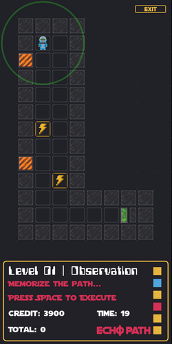 While wearing the mask, you can see the entire level clearly: the layout of the grid, the location of hazards, and the position of the exit. But while the mask is on, you cannot move.