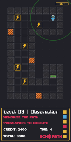 When you remove the mask, you regain control — but the world becomes obscured. Hazards, switches, and even the goal are no longer visible. You must rely entirely on what you observed before, moving one tile at a time and trusting your memory to guide you safely through the space.